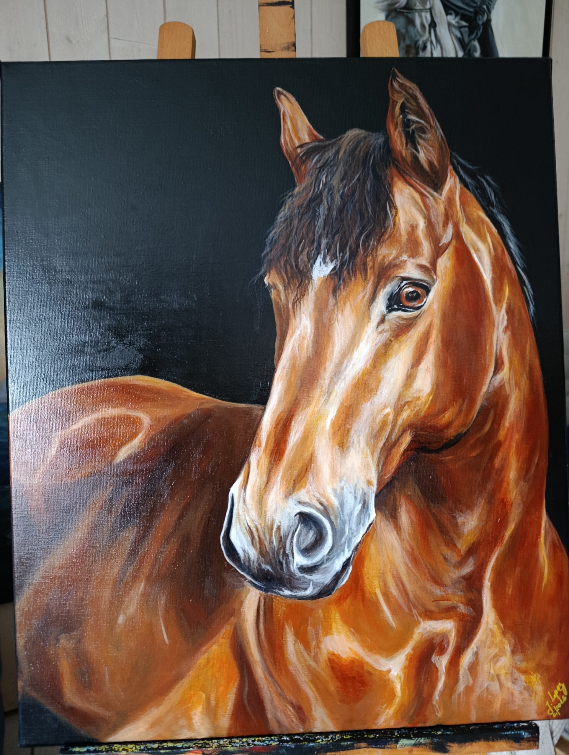 « The portrait of a horse ». Acrylique sur toile, 46x65cm